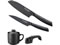 ●セット内容:万能包丁+ペティナイフ+シャープナー+レンジ御膳 ※空気穴があるため、汁気のあるものはお控えください。●色:ブラック ●サイズ・重さ:ペティナイフ/全長(約)24cm(刃渡り(約)12.6cm)・(約)90g、万能包丁/全長(約)29.3cm(刃渡り(約)16cm)・(約)150g、シャープナー/(約)幅16×奥行4.2×高さ5.5cm・(約)88g、レンジ御膳/(約)幅14.5×奥行11×高さ13.3cm(満水容量:550ml)・(約)615g ●素材:[ペティナイフ・万能包丁]刀身:モリブデンバナジウム鋼(表面加工:シリコーン樹脂塗装)・ハンドル:ステンレス鋼(表面加工:焼付塗装)、[シャープナー]本体:ポリプロピレン、滑り止め:シリコーンゴム、砥石:セラミック・ダイヤモンド研磨材、[レンジ御膳]陶器