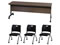 【テーブル】厚さ30mmのしっかりした作りでありながら、移動のしやすい重量を実現しました。 操作感の軽いレバーで片手でらくらくと折りたたむことができ、スタッキング収納可能です。 【チェア】ほどよい弾力のソフトな座面のミーティングチェアです。 使わない時は平行スタッキングでコンパクトに収納が可能。 軽量でキャスター付き、背もたれには取っ手もついているので、設置や片付けもラクラクです。 |