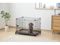 トレーにはサークルのガタツキを防ぐバックルと床傷を防止するゴム脚が付いています。高級感のあるマットな質感でインテリアにぴったりなデザインです。開け閉めラクラクのスライドドア仕様です。移動に便利なキャスター付きです。 |