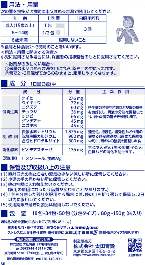生薬特有の芳香味と効きめを生かすようにしております。弱った胃を元気にし、飲みすぎや胃もたれなどの胃の不快な症状や食欲不振を改善します。