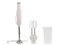 ●タイプ:スティック/●つぶす・まぜる:〇/●泡立てる:〇/●定格消費電力:200W/●スピード調節:2段階(ターボモード)/●耐熱温度:60℃/●容器容量:600ml/●連続使用時間:1分/●寸法:W6.8×H39.5×D6.8cm(本体)/●質量:0.585kg(本体)/●セット内容:本体、ブレンダー、ビーター、ビーター用アタッチメント、計量カップ