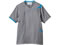 ●素材:ソフトラチネ 混率:ポリエステル100%●肩口スナップテープ仕様●アシンメトリーなデザイン●脇下ベンチレーション仕様●内ポケット付き●ストラップホールド●SEK制菌加工●吸汗●制電●防汚●色:グレー×ロイヤルブルー●サイズ:M