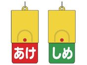 ●表示内容:あけ/しめ 赤地白文字/緑地白文字●縦(mm):101●横(mm):48●厚さ(mm):6.5●摘要:ステンレス二重カン付●ロックボタン切替式●両面表示●本体・表示プレート ABS樹脂●ポールチェーンは別売です。