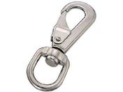 アイの部分が回転するので、チェーン等のよりとりになります。スプリングフックで手軽に開閉作業ができます。 |