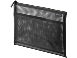 中身が見えるメッシュ素材のアクセサリーケース。W200×D10×H120mm。ブラック。