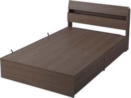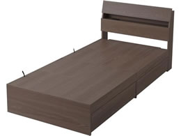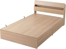 収納にこだわったベッドです。温かみのある木目調デザインで、なめらかな質感です。
