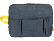 耐久性のあるデニム生地を使ったタブレット端末用のケースです。10.1型までのタブレット端末対応です。全面ポケットに充電器・メモリやスマホなどを収納できます。書類や資料を入れてインナーバッグとしても使用可能です。クッション材入りです。デニム生地なので使うほど味がでます。 |