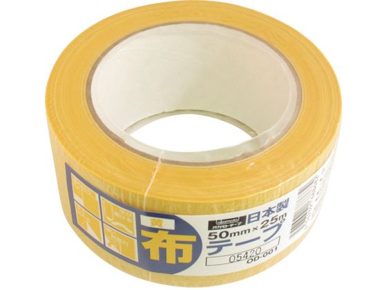 ●色:イエロー●幅(mm):50●長さ(m):25●厚さ(mm):0.2●テープカット条件:手で切断可能●粘着力(N/25mm):8.8●粘着力:3.5N/10mm●引張強度:44.2N/10mm●手で切断可能●基材:スフ+ポリエステル●粘着剤:ゴム系