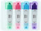 ●本体サイズ:約Φ14×高さ145mm●本体重量:1本あたり10g●4色(ライムミントグリーン、シュガーコメットピンク、アーススカイブルー、ムーンナイトパープル)●材質:PP●インク:水性染料
