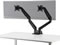 クランプ式とグロメット式の取り付けに対応した左右2面タイプのモニターアームです。水平アームとガスシリンダー内蔵の垂直アーム構造により、スムーズに高さ調整ができ、目線に合わせて快適な位置に設置できます。左右それぞれのアームは独立して可動し、各ディスプレイを自由に調整可能です。2〜10kgのディスプレイに対応します。スリムクランプ採用でデスク背面との干渉を抑え、VESA75×75mm、100×100mmに対応しています。 |
