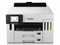 特大容量タンク搭載シングル機、メンテナンスカートリッジMC−G01対応、有線/無線LAN対応、4色顔料、A4対応、前面カセット500枚給紙・後トレイ100枚給紙、連続印刷モノクロ24ipm/カラー15.5ipm、2.7型タッチパネル |