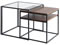 ●カラー:ブラウン ●商品サイズ(大テーブル):W60×D60×H60.5 ●商品サイズ(小テーブル):W54×D54×H56.5 ●製品重量:15.5kg ●主材質:強化ガラス、合成樹脂化粧合板、スチール(粉体塗装) ●備考:組立式(約30分) ●耐荷重:ガラス天板10kg、木天板15kg、棚板5kg