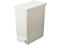 手を使わずにフタの開閉ができるペダル式なので、両手がふさがっていても楽にゴミ捨てが可能です。フタが中央から左右に分かれて大きく開く両開きスタイルは、開くときのフタの高さがフタ幅の約半分サイズですむので上部にスペースがあまりとれない場所でも設置可能です。背面には後輪キャスターがついていて、設置スペースから引き出すときなどゴミ出しや移動に便利です。 |