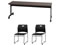 ●フォールディングテーブル1台+RAPスタッキングチェア2脚 セット ●外寸/テーブル:幅1800×奥行450×高さ700mm/チェア:約幅500×奥行565×高さ770(座面高430)mm(1脚あたり) ●カラー/テーブル:ブラックフレーム×ウォールナット天板/チェア:背ブラック×座面ブラック ●材質/テーブル:天板/メラミン樹脂化粧板、エッジ/PVC貼り、脚/スチール(粉体塗装)、キャスター/ナイロン/チェア:背座/ポリプロピレン、張地/PVCレザー(塩化ビニール)、ウレタンフォーム、フレーム/スチール(粉体塗装) ●機能/テーブル:中棚付き/チェア:スタッキング ●重量/テーブル:21.4kg/チェア:約5kg(1脚あたり) ●梱包重量/テーブル:23.6kg/チェア:約8kg(1脚あたり) ●セット内容/テーブル(GLF−1845−FW)×1台/チェア(Rap−SC−FW)×2脚 ●組立品 ●保証期間:1年