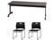 ●フォールディングテーブル1台+RAPスタッキングチェア2脚 セット ●外寸/テーブル:幅1800×奥行600×高さ700mm/チェア:約幅500×奥行565×高さ770(座面高430)mm(1脚あたり) ●カラー/テーブル:ブラックフレーム×ウォールナット天板/チェア:背ブラック×座面ブラック ●材質/テーブル:天板/メラミン樹脂化粧板、エッジ/PVC貼り、脚/スチール(粉体塗装)、キャスター/ナイロン/チェア:背座/ポリプロピレン、張地/PVCレザー(塩化ビニール)、ウレタンフォーム、フレーム/スチール(粉体塗装) ●機能/テーブル:中棚付き/チェア:スタッキング ●重量/テーブル:23.2kg/チェア:約5kg(1脚あたり) ●梱包重量/テーブル:26.4kg/チェア:約8kg(1脚あたり) ●セット内容/テーブル(GLF−1860−FW)×1台/チェア(Rap−SC−FW)×2脚 ●組立品 ●保証期間:1年