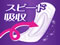 動いてもずれにくいぎっしり詰まった強力吸収体! NEW!スピード吸収。 NEW!吸収エリア幅広設計※1。 ぴったりフィット。 横モレ防止デザイン。 超スピード消臭技術! ※適切なサイズ・容量の選択が重要です。 ※1 従来品比較。 吸水ナプキン尿ケア。 |