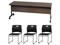 ●フォールディングテーブル1台+RAPスタッキングチェア3脚 セット ●外寸/テーブル:幅1800×奥行600×高さ700mm/チェア:約幅500×奥行565×高さ770(座面高430)mm(1脚あたり) ●カラー/テーブル:ブラックフレーム×ウォールナット天板/チェア:背ブラック×座面ブラック ●材質/テーブル:天板・幕板/メラミン樹脂化粧板、エッジ/PVC貼り、脚/スチール(粉体塗装)、キャスター/ナイロン/チェア:背座/ポリプロピレン、張地/PVCレザー(塩化ビニール)、ウレタンフォーム、フレーム/スチール(粉体塗装) ●機能/テーブル:中棚付き、幕板付き/チェア:スタッキング ●重量/テーブル:27.1kg/チェア:約5kg(1脚あたり) ●梱包重量/テーブル:31.2kg/チェア:約8kg(1脚あたり) ●セット内容/テーブル(GLF−1860M−FW)×1台/チェア(Rap−SC−FW)×3脚 ●組立品 ●保証期間:1年