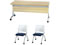 【テーブル】厚さ30mmのしっかりした作りでありながら、移動のしやすい重量を実現しました。 操作感の軽いレバーで片手でらくらくと折りたたむことができ、スタッキング収納可能です。 【チェア】ほどよい弾力のソフトな座面のミーティングチェアです。 使わない時は平行スタッキングでコンパクトに収納が可能。 軽量でキャスター付き、背もたれには取っ手もついているので、設置や片付けもラクラクです。 |