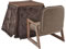 ●カラー:ブラウン ●商品サイズ:本体:約幅55×奥行55×高さ38/57cm、椅子:約幅50.8×奥行44×高さ58/54.8/51.6cm、布団:170×170cm ●商品重量:本体:約11.5kg、椅子:約6.0kg、 ●消費電力:300W ●U字形石英管ヒーター ●中間スイッチ ●天板:繊維板 ●継ぎ脚19cm ●セット内容:こたつ本体、椅子、布団 ●注文単位:1セット