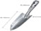 球根の植え付け深さが解る目盛付。握り部の裏面に補強板を入れているので丈夫です。収納に便利な吊金具付きです。花壇・プランターなどの土入れ、土出し、苗の植え替え球根の植え付け作業時に。 |