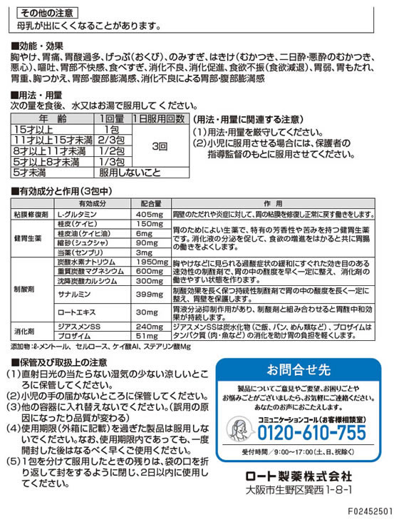 胸やけ、胃痛、胃酸過多、げっぷ(おくび)、のみすぎ、はきけ(むかつき、二日酔・悪酔のむかつき、悪心)、嘔吐、胃部不快感、食べすぎ、消化不良、消化促進、食欲不振(食欲減退)、胃弱、胃もたれ、胃重、胸つかえ、胃部・腹部膨満感、消化不良による胃部・腹部膨満感