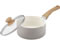 ふっ素樹脂コーティングを施し、汚れがこびりつきにくくなっています。注ぎ口が2か所付いているため、液体などを注ぎやすい形状となっています。ナチュラルカラーと木目調のハンドル・ガラスふたのつまみは、キッチンに馴染みやすく可愛らしいデザインです。内側はマーブル模様です。有害物質(PFOA/PFOS)不使用の塗料を使用しているため、安心してお使いいただけます。 |
