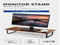 ●対応サイズ:〜27インチディスプレイ ●耐荷重:10kg ●サイズ:幅約590mm×奥行約260mm×高さ約122mm ●質量:約1.68kg ●カラー:ウォールナット ●材質:パーチクルボード、スチール ●その他:ディスプレイスタンド下部内寸:幅約505mm×奥行約260mm×高さ約110mm