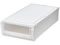 ●カラー:ホワイトクリア ●サイズ:幅39×奥行74×高さ18cm ●重量:3.05kg ●材質:引出・外枠・天板/PP、前パネル/MBS樹脂、補強板/アルミ、前倒れ防止パーツ/スチロール ●生産国:日本 ●耐荷重:天板/5kg、引出内/2.7kg