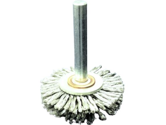 小径ながら毛材密度が高く狭い場所での作業性や耐久性に優れています。どの電動工具にもぴったり適合し取付交換が容易な軸付き構造です。硬鋼線を亜鉛メッキしてヨリ加工をした毛材です。強力な研削力と耐折損性に優れています。 |
