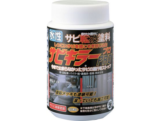 サビに直接塗装することでサビの再発を予防でき、匂いもほとんどありません。水性サビ転換塗料です。密着性に優れ亜鉛メッキへの密着も良好です。上塗りはどんな塗料でも問題ありません。 |