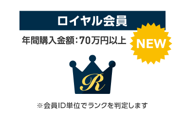 単独で70万円(税抜)以上に達した会員IDのみ、ロイヤル会員へランクアップいたします。