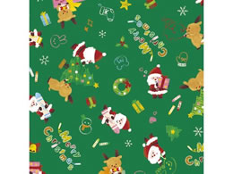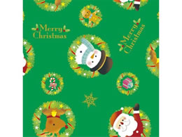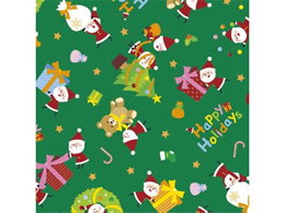 ササガワ 包装紙10枚ロール リトルサンタ緑 全判 49-4662