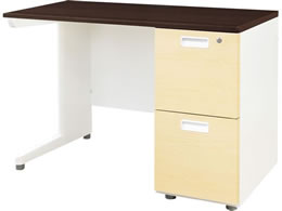 Netforce ナッツ 片袖机 スリム 2段 W1000 WH×DBR×WH無地