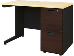 Netforce ナッツ 片袖机 スリム 2段 W1000 BK×DBR×BK無地