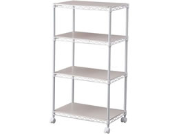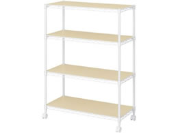 アイリスオーヤマ カラーメタルラック ウッドボード付4段 幅750mm ホワイト