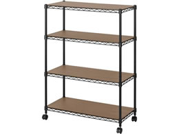 アイリスオーヤマ カラーメタルラック ウッドボード付4段 幅750mm ブラック