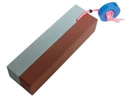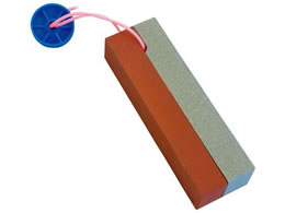 鎌・刈込鋏を砥ぐ両面ひも付き砥石。