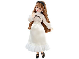 レースのトップスとフリルのスカートで、シックな装いのリカちゃんです。