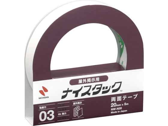 ●サイズ:20mm×5m●材質/基材:スフ片面ポリラミ、粘着剤:ゴム系、はく離紙:紙●特長:ベニヤ板やブロック塀など、屋外専用の両面テープです。風雨に強く凹凸面にもよく付きます。●用途:ポスターの貼り付け、ガラス・金属・プラスチック等のパネル固定に。●注文単位:1巻●GPNエコ商品ねっと掲載