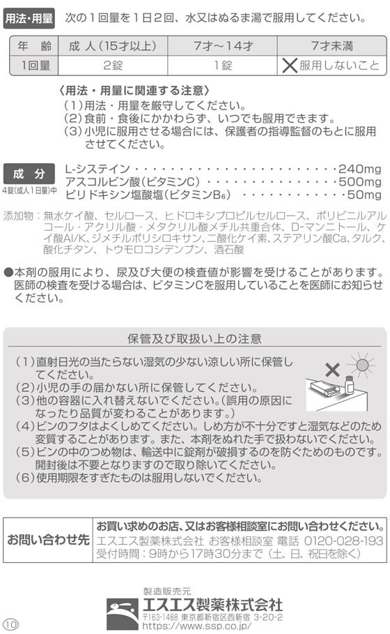●L−システイン、ビタミンB6、ビタミンCが、からだの内側から肌に働きかけ、シミ・そばかすなどの色素沈着を緩和します。