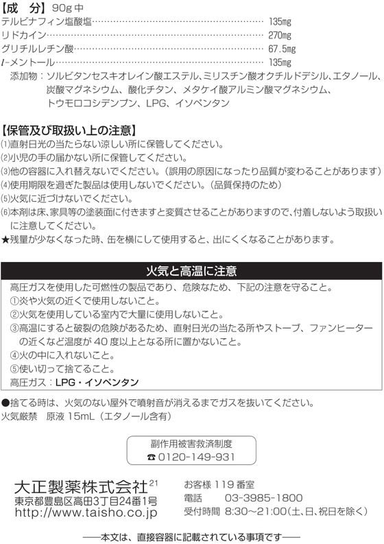 ●白癬菌を殺菌する「テルビナフィン塩酸塩」に、かゆみ止め成分「リドカイン」、炎症を改善する「グリチルレチン酸」、清涼感を与える「l−メントール」の4種類の有効成分を配合した1日1回型の水虫・たむし治療薬です。