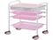 ●材質:本体/スチール粉体塗装仕上げ、天板/メラミン化粧合板、引出しケース・引出しパット・固定カゴ/PP(ポリプロピレン)樹脂成形●キャスター:φ75mmナイロン製(ストッパー無し)●重量:8kg●耐荷重:全体/約10kg、天板・トレー・カゴ/約5kg●色:ピンク●幅×奥行×高さ※1(mm):416×300×890●※1高さ把手含む。●C−208●型番:12082●サイズ:●小引き出し(1個のサイズ/最上段):外寸:幅167×奥行257×高さ80mm、内寸:幅150×奥行250×高さ75mm●引き出し式トレーパット(ストッパー付き/2段目、3段目):外寸:幅350×奥行260×高さ58mm、内寸:幅300×奥行230×高さ53mm●固定式カゴ(最下段):外寸:幅348×奥行260×高さ80mm、内寸:幅305×奥行220×高さ73mm