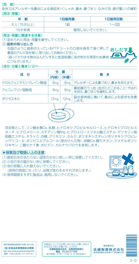 急性又はアレルギー性鼻炎による諸症状(くしゃみ、鼻水、鼻づまり、なみだ目、頭が重い)の緩和。