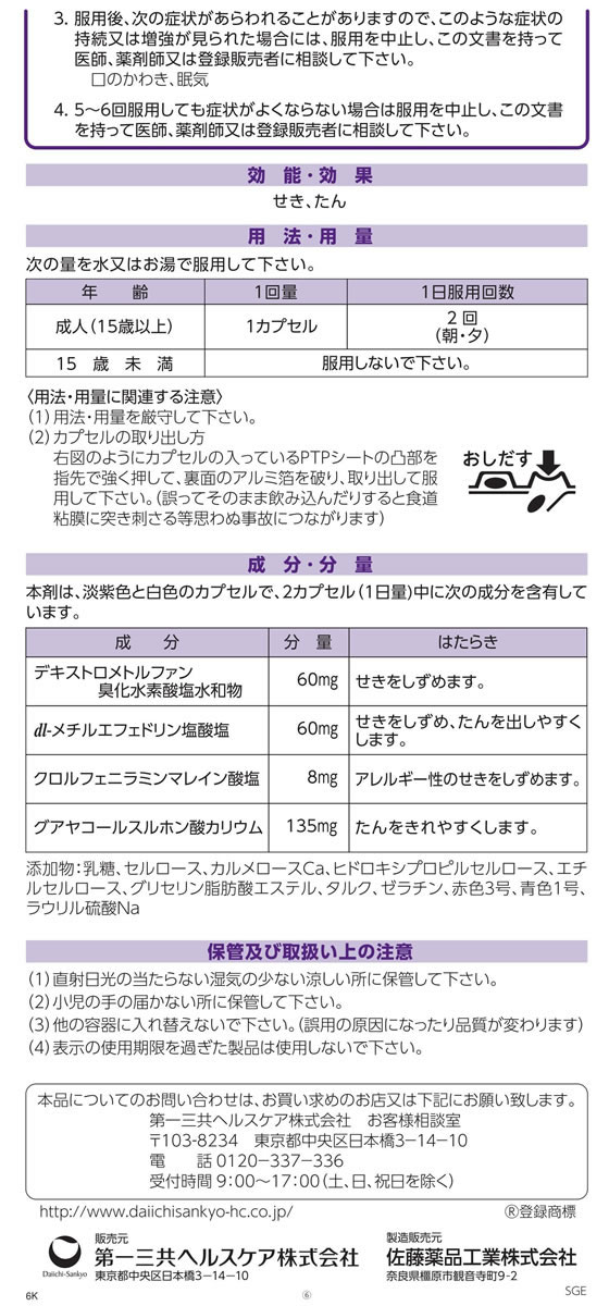 ★薬)第一三共 プレコール持続性せき止めカプセル 10カプセル【指定第2類医薬品】