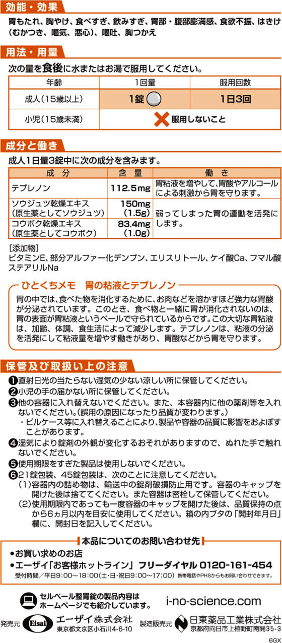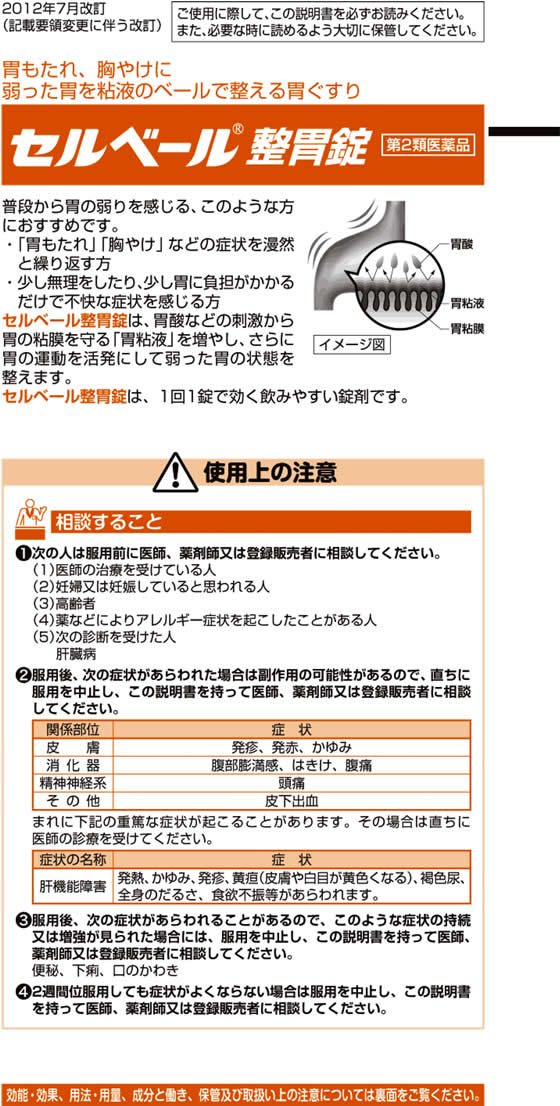 セルベール整胃錠は、胃酸などの刺激から胃の粘膜を守る「胃粘液」を増やし、さらに胃の運動を活発にして弱った胃の状態を整えます。