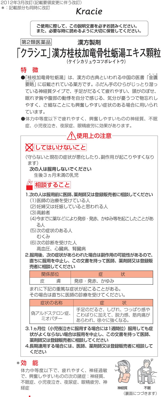 薬)クラシエ 桂枝加竜骨牡蛎湯エキス顆粒45包【第2類医薬品】