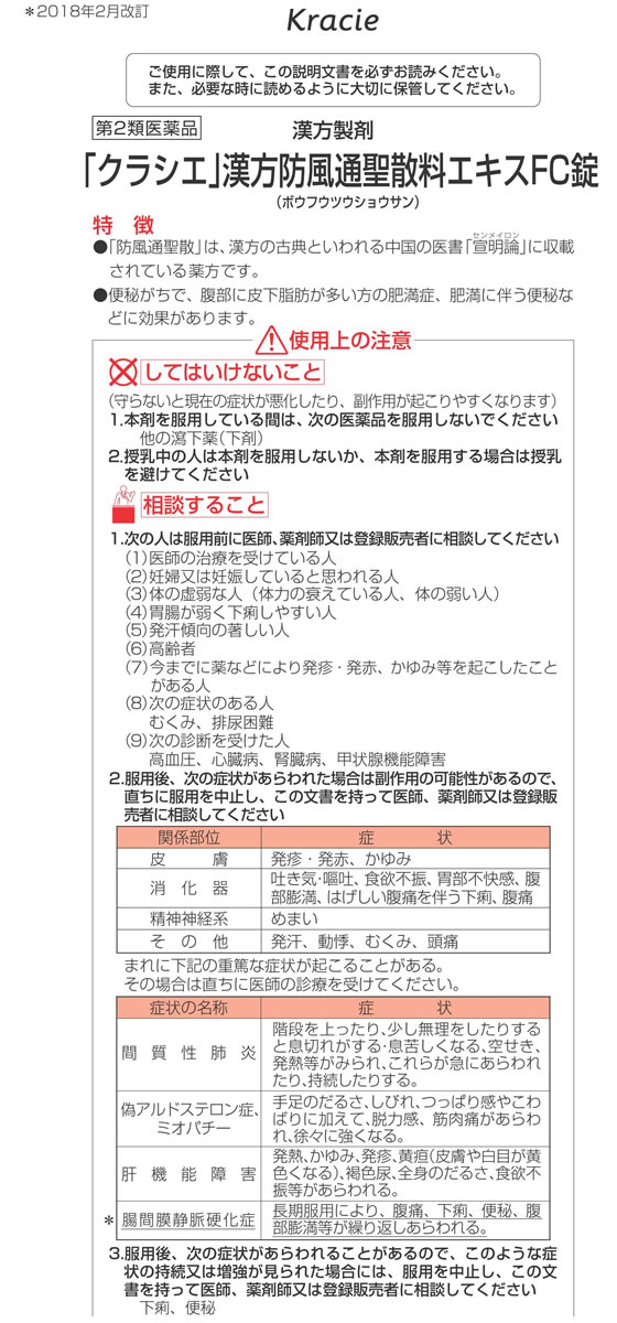 ★薬)クラシエ 防風通聖散エキスFC錠 360錠【第2類医薬品】