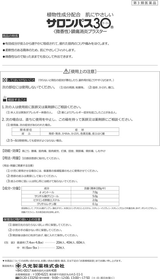 ★薬)久光製薬 サロンパス30 60枚【第3類医薬品】