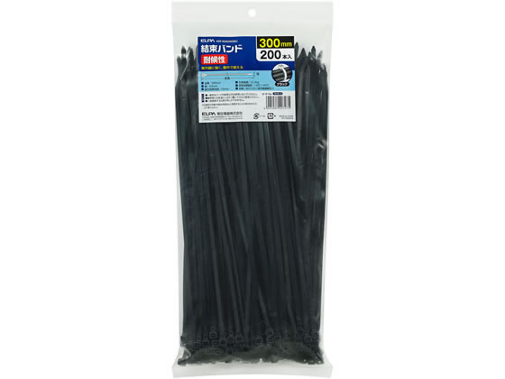 ●全長:300mm●幅:4.8mm●最大結束内径:76mm●引張強度:22.2kg●使用温度範囲:−40℃〜+85℃●材質:66ナイロン(紫外線遮蔽剤入)●カラー:ブラック●注文単位:1袋(200本)