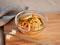ガラス製のボウル。 シンプルで持ちやすい形状です。 |